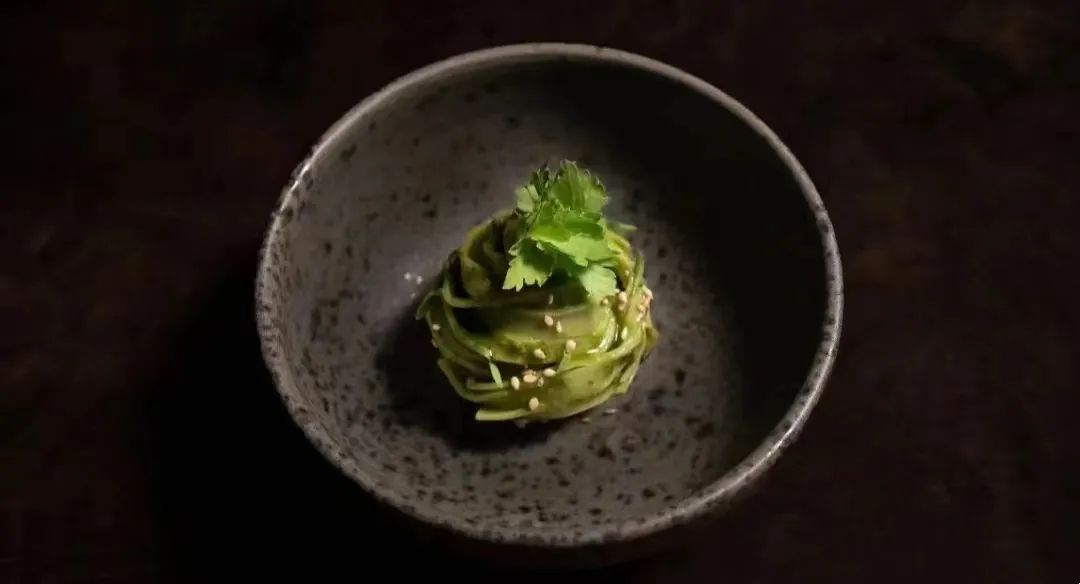 没过多久,在京城新派高端素菜餐厅兰斋,做菜品创新宣发时,莱茵衣藻再次作为明星选手出现在了新品中。兰斋把这种藻类揉进面团里,做成凉面,再佐以柚子醋、味噌调味,在炎炎夏日的一众新品种,脱颖而出。