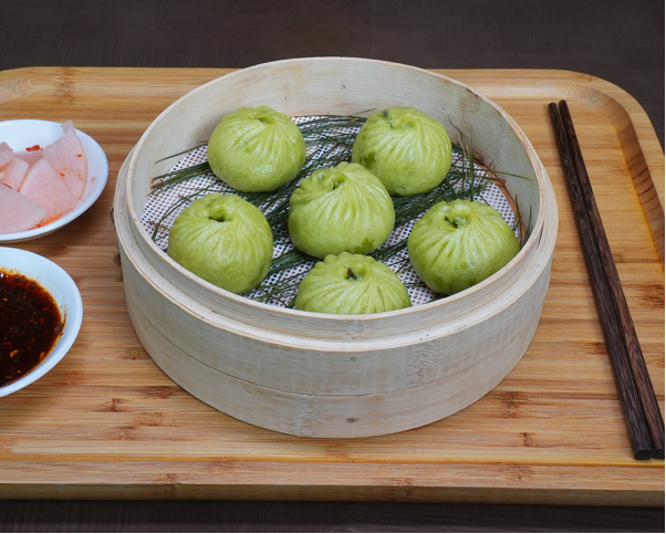 包馔夜包子也同步上新了面皮中含有莱茵衣藻的小笼包,绿色的面皮看起来更加的清爽、有食欲。