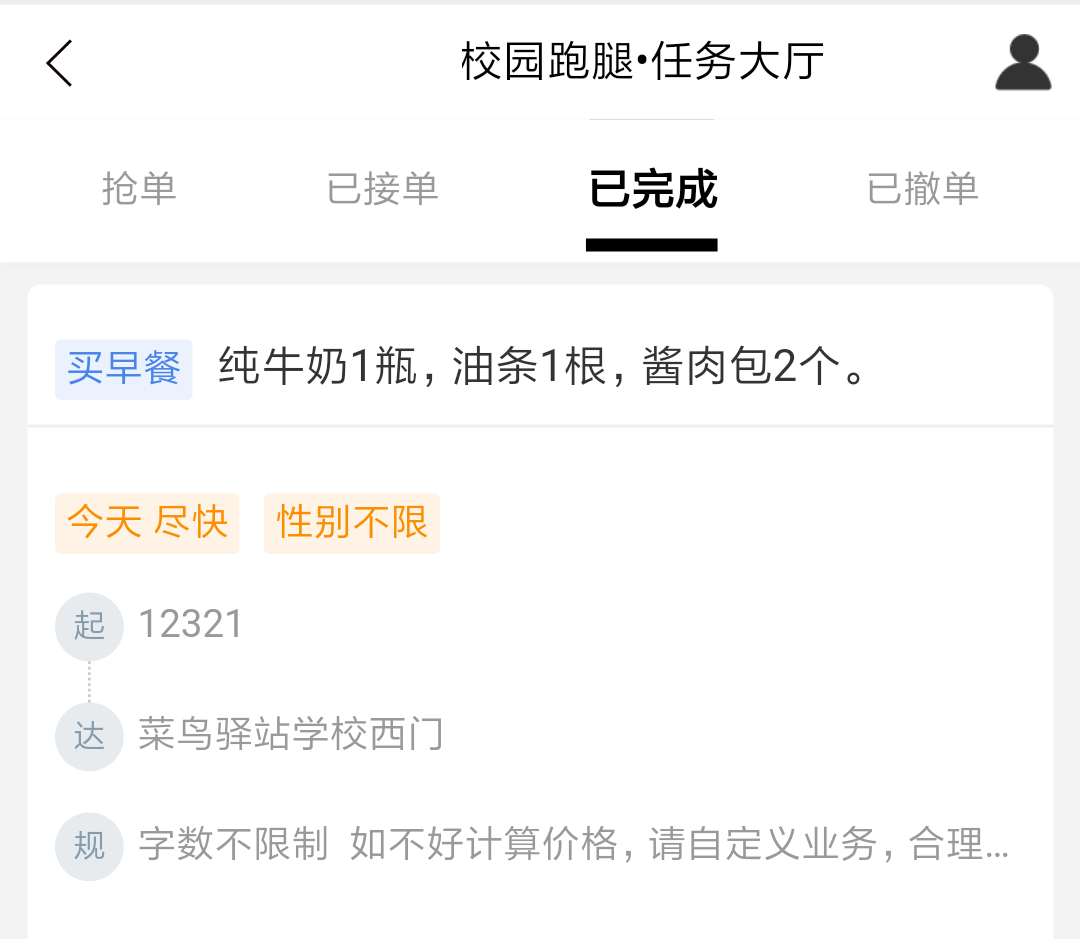 有疑问请联系校园跑腿运营指导