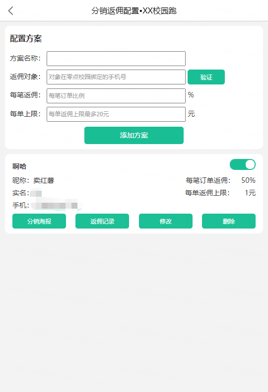 分销返佣指运营主可以把一部分用户、同学设定成为分销员,分销员可以帮忙推广,通过分销员推广的用户下单之后,系统会自动给分销员划分佣金。