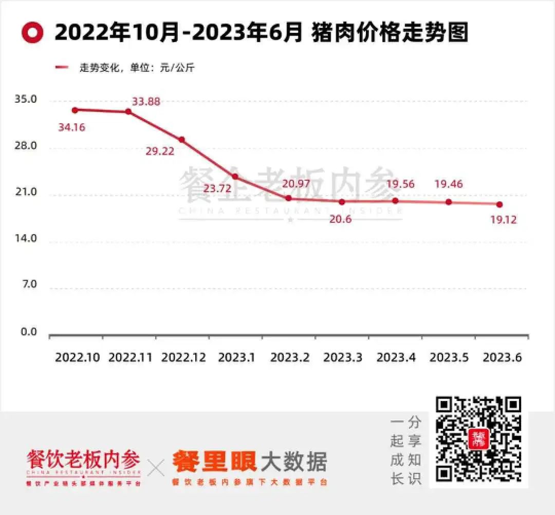 龙大美食上半年亏损高达6.24亿,去年同期净利0.36亿,同比大幅下降1825.61%。其中,上半年猪肉价格持续低位是主要原因之一,据农业农村部数据监测,生猪价格在去年11月是35.9元/公斤,而到今年6月份仅为每公斤19.12元,降幅达到46.74%。