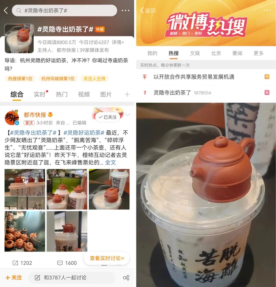 就在昨天,杭州灵隐寺的“好运奶茶”突然冲上微博热搜。
