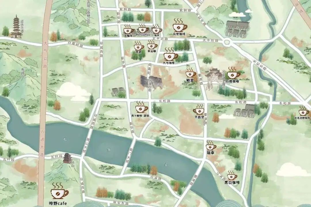 松阳县的咖啡店已经发展到可以做出一张咖啡地图了。从上图可以看出,除了瑞幸、库迪、幸运咖、T97等咖啡连锁品牌,当地还有很多独立咖啡品牌。