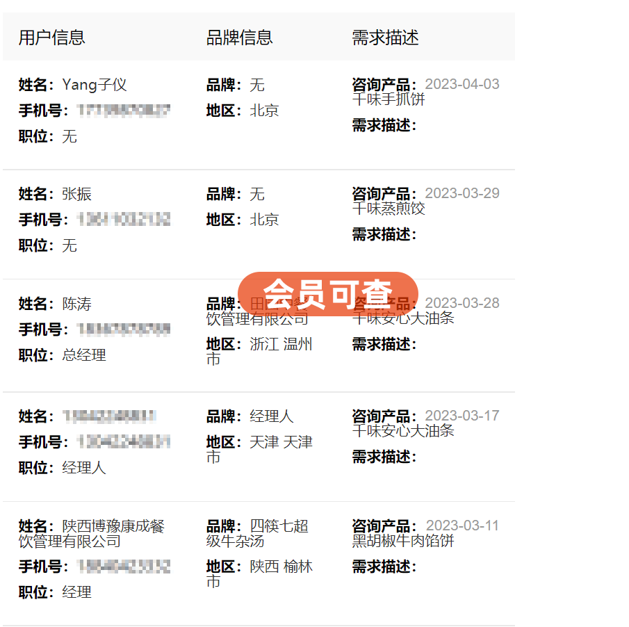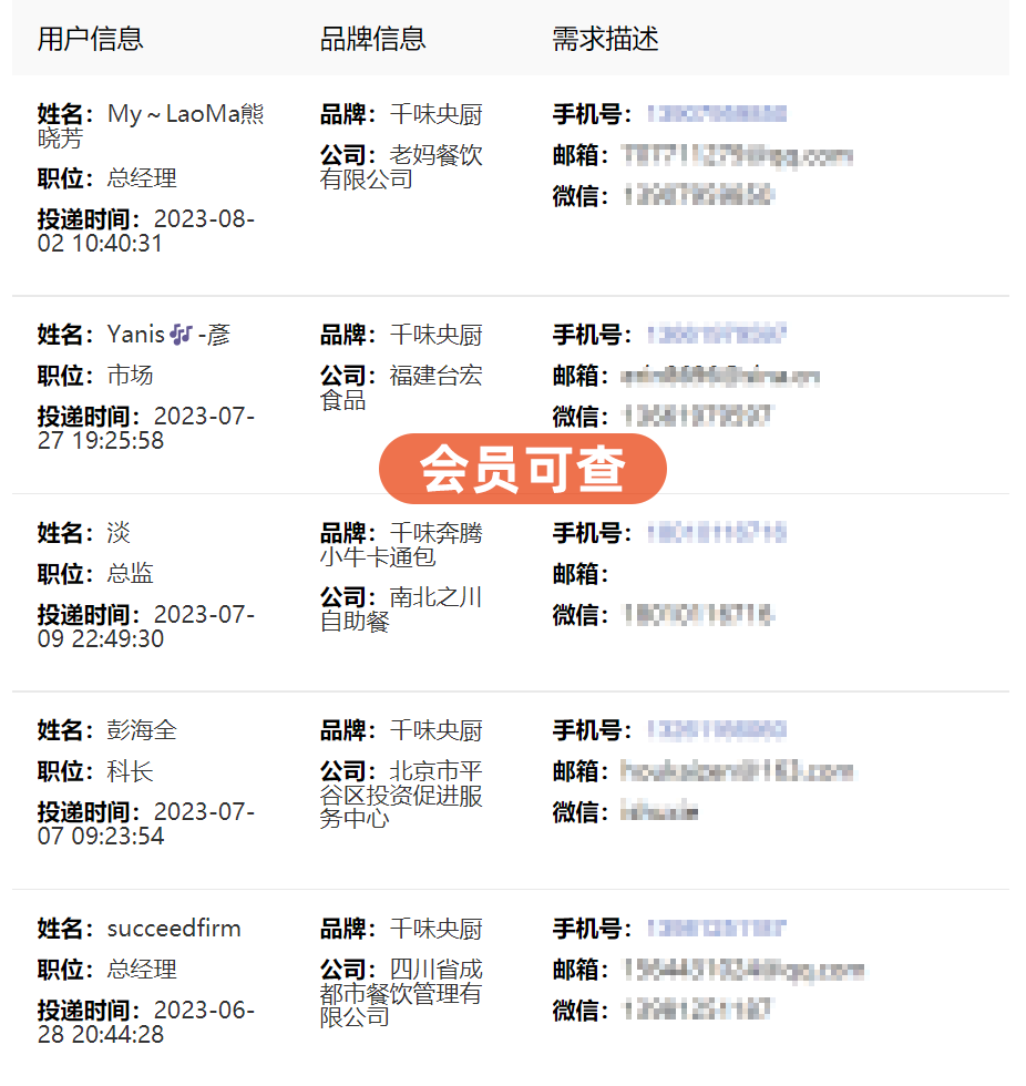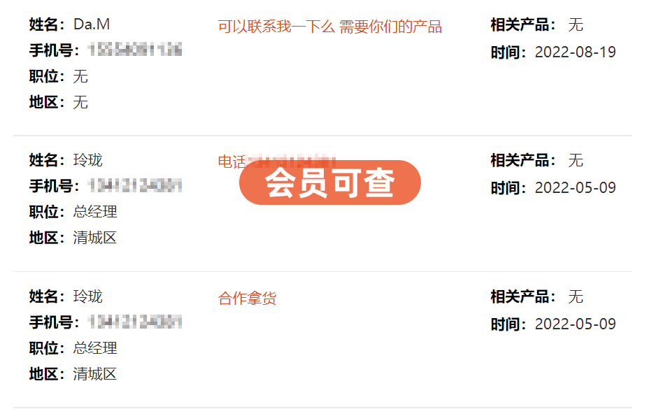 访客清单、咨询单、名片表、留言板,四大名单精准获得销售线索,从引起兴趣浏览企业到产生疑问完成咨询,再到产生合作意愿留下名片,最终到合作留言完成对接,销售线索经过层层筛选,最终实现销售线索转化。后台数据包含浏览者姓名、职位、电话、访问时间,品牌、地区、咨询产品、邮箱、微信、留言等信息,构建完整画像,实现订单直达!