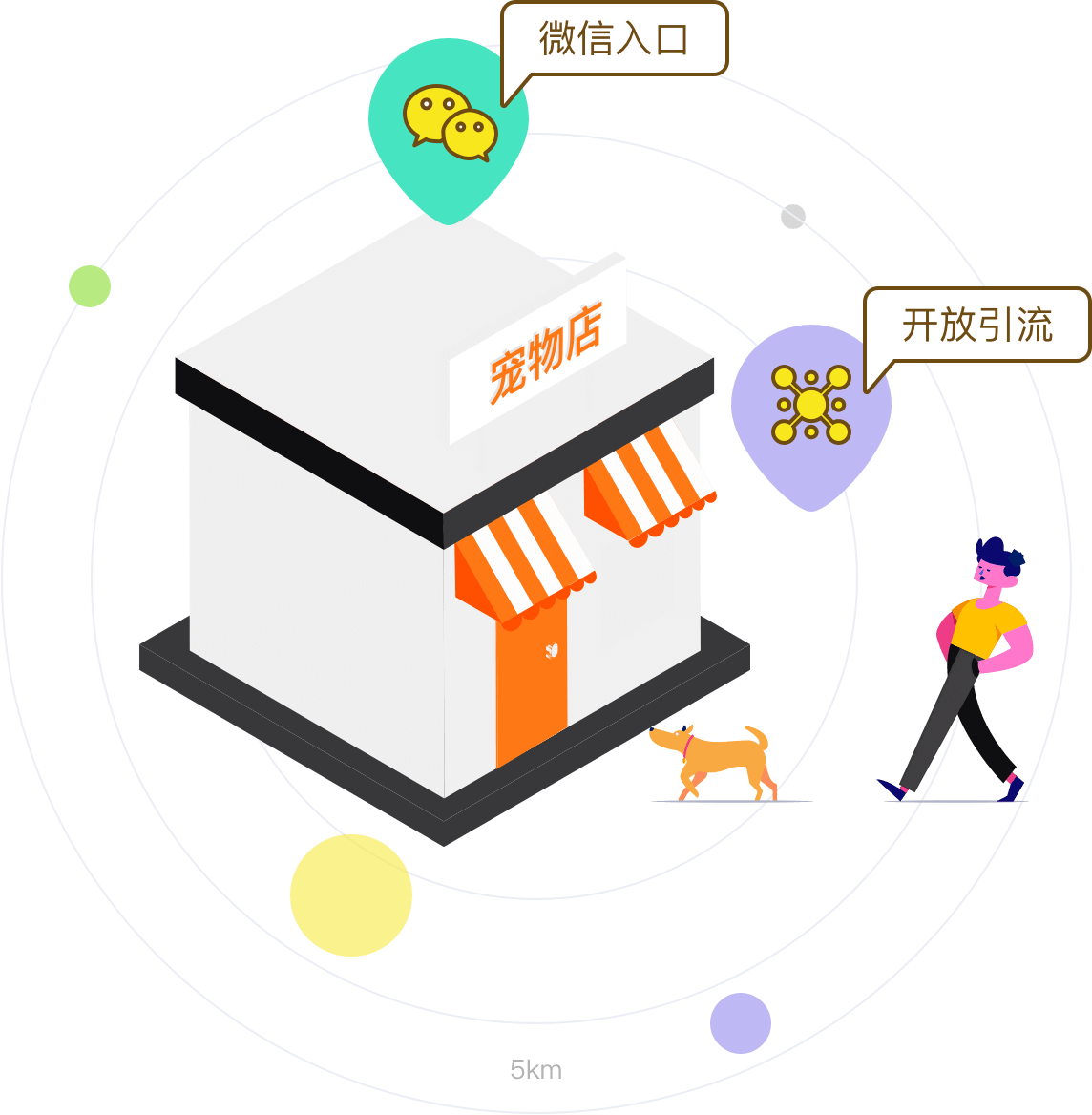 开通小程序,除了微信搜索能找到你的店铺以外,在以你实体店铺为圆心五公里半径的范围里,微信开放流量,让你自动出现在别人手机附近小程序的序列里,强大的流量入口,不得不高度重视。